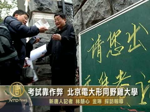 【新唐人2010年7月13日訊】北京廣播電視大學最近驚爆「作弊門」,學生表示,上電大是花錢買證,考試就靠「小抄」。山東大學退休教授孫文廣認為,學術腐敗是社會道德淪喪,加上官方不重視所致。