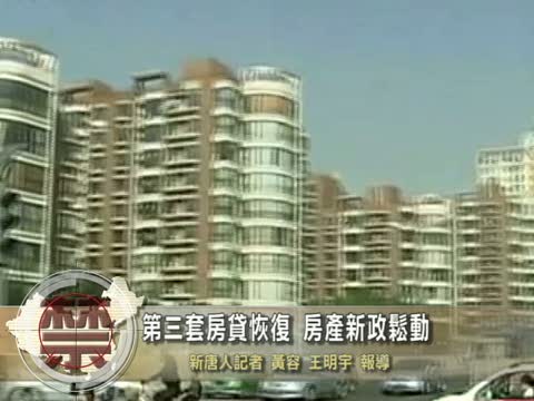 【新唐人2010年7月13日訊】「禁止第三套房屋貸款」是中國抑制房地產投機行為的新政策,不過這項所謂史上最嚴格的新政,很有可能成為“史上最短”的房產新政。目前傳出北京、上海和深圳等中國一線城市的銀行,對於「第三套房貸」已經恢復發放,媒體預測,中國的地產調控政策可能開始鬆動。