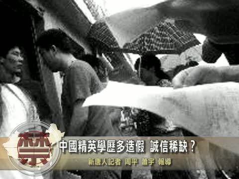 【新唐人2010年7月13日訊】在中國,誠信有問題的精英不勝枚舉,最普遍的就是學歷涉嫌造假。海外野雞大學在中國濫發文憑證書,中國成為假文憑的重災區,而中國內地考生集體公開作弊,花錢買證書。「誠信」真的已經成為中國社會的「稀缺品」嗎?
