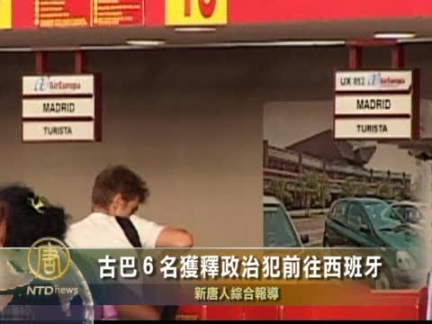 【新唐人2010年7月13日訊】星期一,古巴政府釋放的第一批6名政治犯離開古巴前往西班牙。