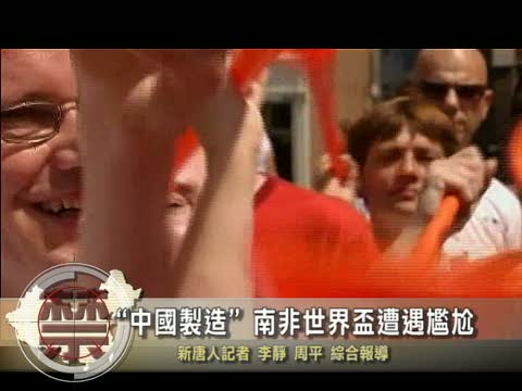 【新唐人2010年7月14日訊】中國足球無緣世界盃,可是“中國製造”卻充斥了這一屆的南非世界盃,讓人頭痛的喇叭嗚嗚祖啦、官方專用足球、五顏六色的球迷假髮、各種紀念品等等。這些“中國製造”看起來聲勢浩大,可是,卻被批評是用嚴重的環境污染和低廉的人工換來的。