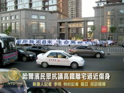 【新唐人2010年7月15日訊】已經開工興建的黑龍江哈齊高鐵線,由於經過哈爾濱東升江畔社區時,離居民樓最近處距離只有8米,引發社區居民恐慌,為此進行抗議 。