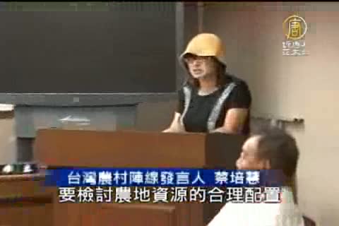 台灣農村陣線發言人 蔡培慧:「三個訴求,第一個是要立即停止圖利財團的圈地行為;第二是要檢討農地資源的合理配置,要顧慮到農民的生存,要顧慮到環境的永續,要顧慮到糧食的安全;最後我們要求馬上修訂徵收土地徵收條例,給農民一個永續生存的機會。」