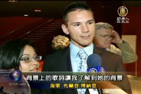 海軍 布蘭登‧博納登(Brandon Bernaden):「極其出色,我真的喜歡神韻。我尤其喜歡打鼓的舞蹈和那個手絹舞。我還特別喜歡那個女高音的演唱,覺得自己的情感和她的演唱非常強地聯系起來了。景上的歌詞讓我瞭解到她的背景。」