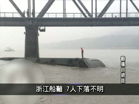 浙江海寧「錢塘觀潮」是每年中秋節慶盛事,週五凌晨的錢塘江上卻發生撞船事件,1艘砂石運輸船在航行中失控撞上嘉紹跨江大橋1座施工平臺而沉沒,船上9人落水,目前仍有7人生死未卜。