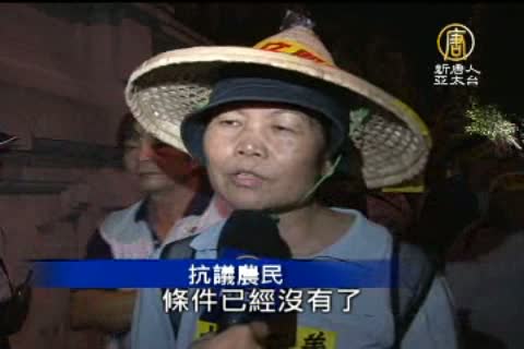 苗栗縣大埔農民抗議縣府強制徵收土地,今天晚上夜宿凱達格蘭大道抗議,同時質疑「農村再生條例」只會助長財團炒地皮。現場情況如何?我們來看記者帶回來的最新消息。