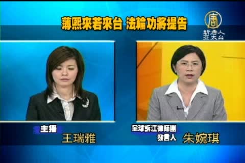 從1999年720至今,法輪功在全球反迫害已經十一年,包括中共前國家主席江澤民在內的許多參與迫害法輪功的中共官員在海外被控以「群體滅絕罪、酷刑罪和反人類罪」起訴。其中,也包括在第五次江陳會上,海基會董事長江丙坤面邀來台的重慶市委書記薄熙來。面對薄熙來可能來台的消息,台灣法輪功的態度是什麼?又將採取什麼行動?我們訪問到全球訴江律師團 發言人 朱婉琪律師做進一步說明。