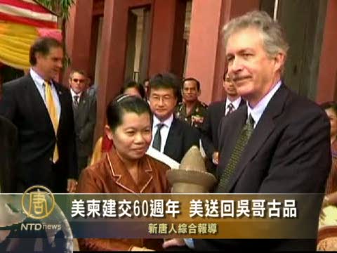 【新唐人2010年7月18日訊】在美國與柬埔寨紀念建交60週年,鞏固兩國關係之際,美國星期日(6月18號)將7件約在10到12世紀吳哥時期的人工藝術品送交給柬埔寨國家博物館,包括神像、裝飾品和青銅器。