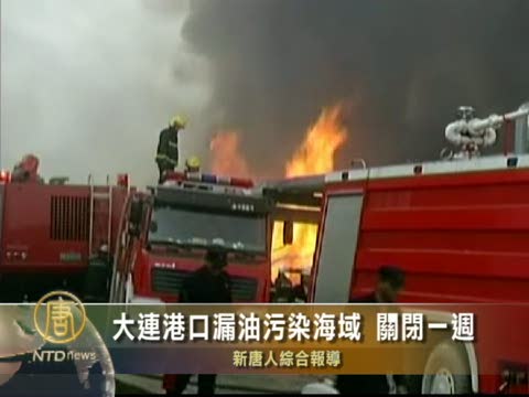 【新唐人2010年7月19日訊】中國最大原油儲備基地、同時也是東北最重要的出口門戶大連新港,在上週五發生輸油管爆炸之後,隨即引發大規模漏油,導致附近海域受到嚴重污染,目前當局已下令關閉港口一星期。