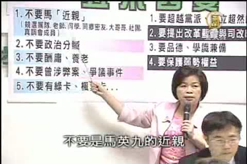 「不要是馬英九的近親,不要政治分贓,不要酬庸或養老,不要曾涉弊案,不要有綠卡、楓葉卡。」