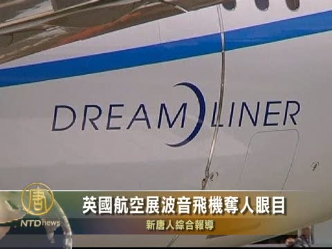 【新唐人2010年7月20日訊】世界上最大的航空展英國範堡羅(Farnborough)國際航空展星期一(7月19日)開幕,波音飛機成為航空展的關注亮點,該公司會在隨後幾天裡宣佈新客機的訂單。