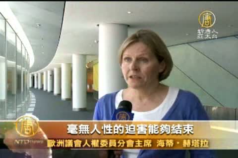 歐洲議會人權委員分會主席 海蒂‧赫塔拉:「我以我全部的同情和支援,期望中共政府對法輪功學員毫無人性的迫害能夠結束。非常難以置信,這個團體在如此嚴厲的迫害下已經走過了十一年。所以,我向法輪功學員致以熱烈的支持,這些人是我所見過的最平和的人。」