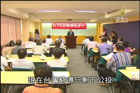 雖然ECFA已經簽完,不過民間對於ECFA的質疑聲浪沒有停過,今天(20日)有傳產業者出面批評政府承諾的配套根本沒做到,台聯黨20日宣布,啟動ECFA公投案的第二階段,要求馬總統不該再向公審會施壓,兩岸簽訂ECFA的重大決策,應該由人民做主。