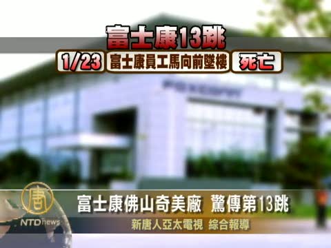 【新唐人2010年7月21日訊】富士康集團又驚傳員工墜樓事件!富士康旗下位在廣東佛山的奇美電子廠,20日上午驚傳一名員工跳樓身亡,這也是今年以來富士康集團的「第十三跳」。事發後,中共下令廣東媒體噤聲,不得報導。但其實今年短短五個月內的富士康十二連環跳事件,引起中國和國際社會各界的強烈關注。我們帶您回顧過去富士康連環跳事件。