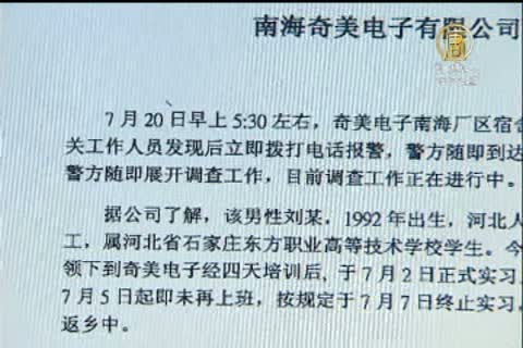 鴻海奇美電佛山廠實習生 驚傳輕生