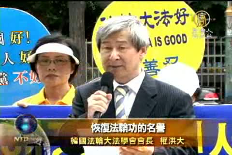 20日,韓國法輪大法學會於中共大使館前舉行記 者招待會,發起“為停止迫害法輪功全球百萬人簽名活動”。學會計劃至11月7日G20韓國首腦峰會召開之日為 止,為“停止迫害法輪功”面向全世界徵求支持者簽名。