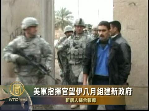 【新唐人2010年7月22日訊】駐伊拉克美軍將在9月前部份撤軍,只留下5萬名士兵. 駐伊美軍最高指揮官雷•奧迪耶諾(Ray Odierno)將軍星期三(7月21號)表示,希望伊拉克能夠在8月份組建新政府。