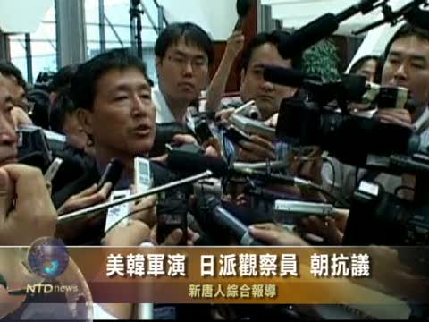【新唐人2010年7月23日訊】這週末美國與韓國將在日本海舉行大規模軍事演習。星期五(7月23號)朝鮮官方發言人指稱,美韓軍事演習侵犯朝鮮主權,並揚言朝鮮近期將對此做出實質回應。同時,日本表示將派遣海上自衛隊以觀察員身份參加軍演。