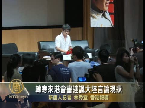 【新唐人2010年7月24日訊】近年來在大陸受到80後年輕人追捧的青年作家韓寒,星期四獲邀出席香港書展演講活動,大批粉絲前來一睹偶像風采,場面熱鬧。韓寒在與讀者對話中,透露出版刊物受阻礙,並諷刺大陸言論審查現狀。