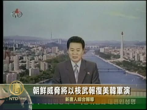 【新唐人2010年7月24日訊】朝鮮官方通訊社星期六發佈國防委員會的聲明,表示朝鮮堅決反對美國與韓國的聯合軍事演習,並將在”必要的時候”以強大的核子嚇阻能力對韓美展開”聖戰”報復措施。