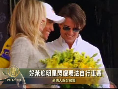 【新唐人2010年7月24日訊】星期五(7月23號),正在法國波爾多推廣新片《危情諜戰》(Night and Day)的好萊塢大明星湯姆•克魯斯(Tom Cruise)和卡梅隆•迪亞茲(Cameron Diaz),為環法自行車領先的車手阿爾貝託•康塔多(Alberto Contador)頒發黃色領騎衫。
