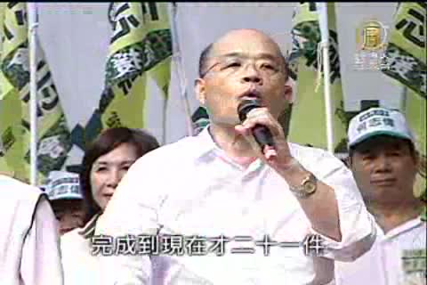 批評對手沒效率,蘇貞昌說他三年內就完成五棟震災房屋的重建。至於被問到自己過去在台北縣長任內推動的新莊副都心案,近來房價飆漲,出現每坪新台幣213萬元的天價,蘇貞昌表示。