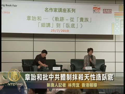 【新唐人2010年7月27日訊】獲邀來港出席書展演講的大陸著名作家章詒和,星期日向讀者們分享她近期,在大陸引起各界強烈反響的臥底論,從其自身的經歷,批評中共體制不斷抹殺人的天性,製造維護其統治的臥底和眼線。