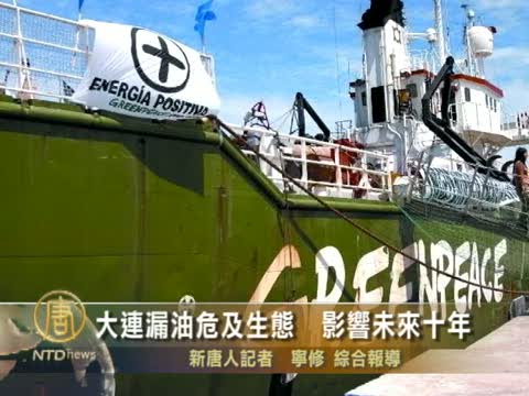 【新唐人2010年7月27日訊】中國大連發生油管爆炸漏油以來,污染面積在不停擴大,目前已達到430平方公里,較上週擴大了一倍,目前三山島等海區清理工作尚未展開。中國環境科研人員指出,這次事故造成的生態危害,將持續10年。