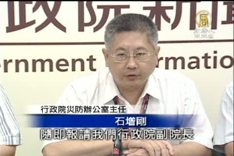 「今天上午,內政部教育江部長,經濟部施部長,隨即報請我們行政院副院長,也就是我們中央災害防治委員會的主任委員,陳沖陳副院長,那麼中央災害應變中心,將會在12點即刻來做一個開設。」