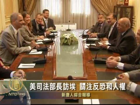 【新唐人2010年7月28日訊】星期二(7月27號),美國司法部長埃里克•霍爾德(Eric Holder)到訪埃及,跟埃及政府的相關部門,討論了反恐合作、埃及人權等敏感的議題。