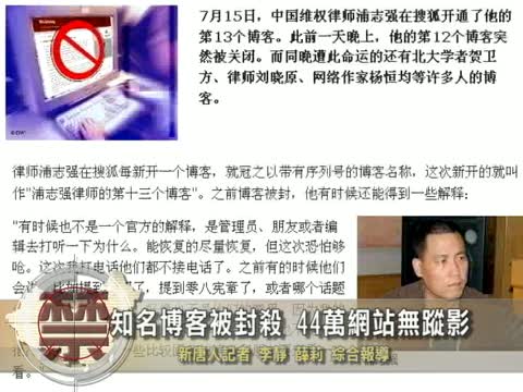 【新唐人2010年7月28日訊】最近,中國大陸網絡許多知名博客一夜之間被封殺。同時,有媒體披露,中國大陸今年有44萬個網站消失得無影無蹤。對這個現象,分析人士認為,這反映了中共當局對網絡和言論自由的控製程度越來越強。