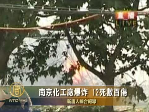 【新唐人2010年7月28日訊】28日早上10點多,位於南京棲霞區萬壽路的一塑料化工廠發生強烈爆炸,火焰竄起10米高,引發多處起火,沿街店舖及樓房玻璃被震碎,至少3人死亡,超過300人受傷送院,其中52人重傷。