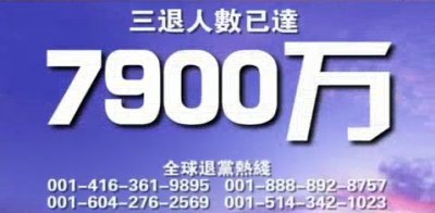 【新唐人2010年7月28日訊】退黨、退團、退隊之人數已達7900萬。