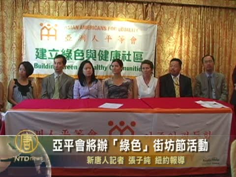 【新唐人2010年7月29日訊】亞洲人平等會,今天(7月28日),在紐約華埠麒麟金閣酒樓舉行記者會,宣佈為“建立綠色與健康社區”,將舉行2010街坊節家庭同樂日活動。
