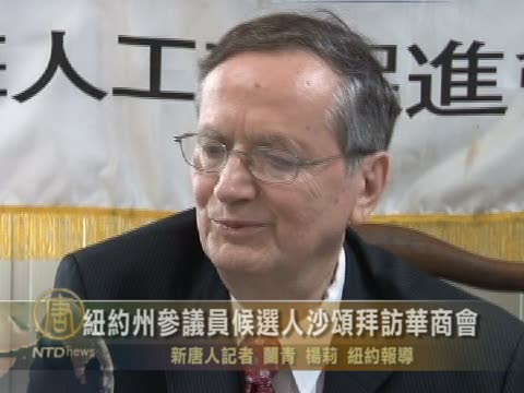 【新唐人2010年7月29日訊】準備競選紐約州參議員的沙頌(Isaac Sasson)7月28日來到法拉盛華商會拜訪,希望社區了解自己的主張。