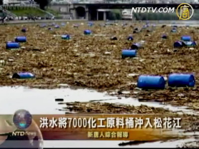 【新唐人2010年7月29日訊】中國大陸吉林省吉林市當局星期四(7月29日)承認,星期三被洪水衝入松花江的7000個化工原料桶,目前只打撈到400只,這些原料桶中有3000桶裝有易燃化學品三甲基一氯硅烷和六甲基二硅氮烷,並且它們遇水都會分解產生鹽酸和氨等有害化學品。