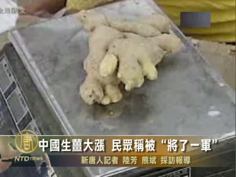 【新唐人2010年7月29日訊】中國繼大蒜、綠豆價格暴漲後,生薑價格亦漲到每斤7元人民幣,有批發商透露今年的生薑大部分出口,造成國內市場供不應求,加上近期洪災影響,引發生薑大漲,民眾戲稱被“將了一軍”。
