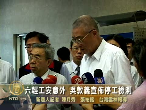【新唐人2010年7月31日訊】台灣六輕工安意外的善後風波,30號出現轉折,行政院長吳敦義臨時趕赴麥寮廠區視察,併發表五點聲明,包括宣佈臺塑六輕廠全面停工、對全鄉民身體健康檢查等。現場臺塑總裁也發表道歉聲明,表示不會推卸責任,而總統府最新表示,一切交由政院專業決定。