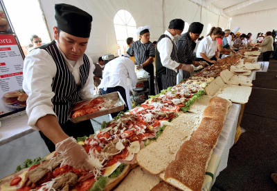 三明治的每一節都有不同的味道,分別代表不同地區廚師的拿手配方。組織者說,這個巨型麵包圓滿成功,超過了他們在一年前設立的目標。