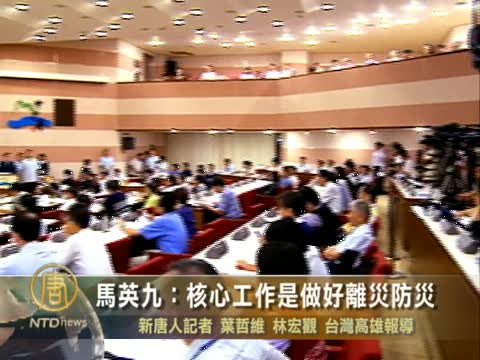 中華民國總統馬英九:「所以我們痛定思痛,我們不怪天不怪人,我們自己想法子,把離災防災的工作做好。」