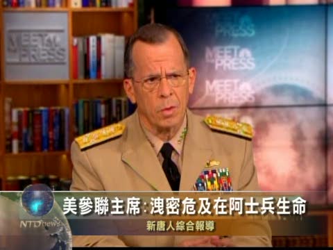 【新唐人2010年8月2日訊】美國政府正擴大對維基泄密案的調查。美軍參謀長聯席會議主席邁克.馬倫週日在NBC“會見新聞界”節目中重申,維基解密(WikiLeaks)網站日前泄漏駐阿富汗美軍大量機密文件,可能會危及在阿富汗士兵和平民的生命。