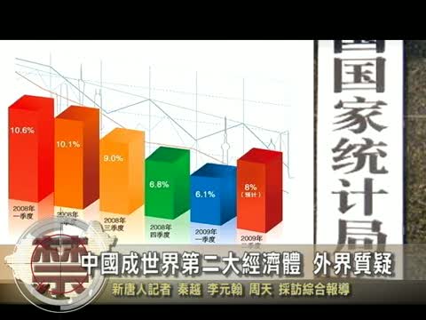 【新唐人2010年8月2日訊】中國國家外匯管理局局長易綱7月30號表示,中國已經超過日本,成為僅次於美國的全球第二大經濟體。對此,一些專家學者提出質疑。中國官方統計國內生產總值(GDP)數據,一直被外界指責缺乏可信性。今年上半年全國GDP數據,又曝出與各地GDP統計不符的現象。