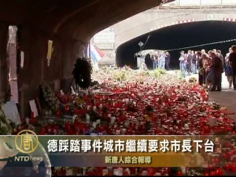 【新唐人2010年8月3日訊】德國杜伊斯堡市電子音樂節,踩踏事件悲劇已經過去超過一週了,該市憤怒的市民要求市長下臺的呼聲越來越高,他們已經開始徵集要求市長為這場悲劇負責的簽名。