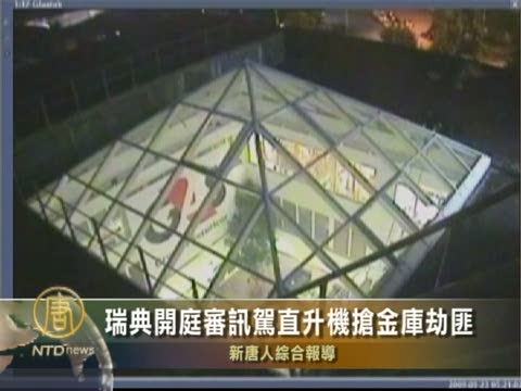 【新唐人2010年8月3日訊】瑞典斯德哥爾摩地區法庭8月2日(星期一),開庭審訊去年駕駛直升機搶劫金庫的10名嫌犯,他們搶劫了大約530萬美元,當時在瑞典轟動一時。