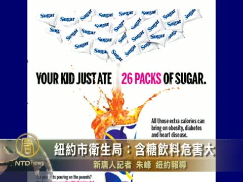 【新唐人2010年8月4日訊】紐約人五人中就有三人超重或肥胖,為了提醒民眾不要過量飲用含糖飲料,紐約市衛生局本週開始在地鐵系統張貼相關海報,一起來看報導。