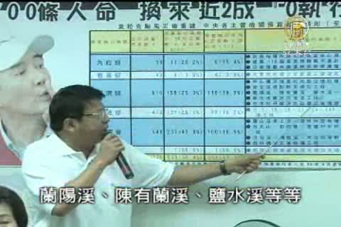 民進黨立委 翁金珠:「水災到今天已經一年了,700多條人命的犧牲、一萬一千多人還處在危險的區域,難道你(政府)看不到嗎?」