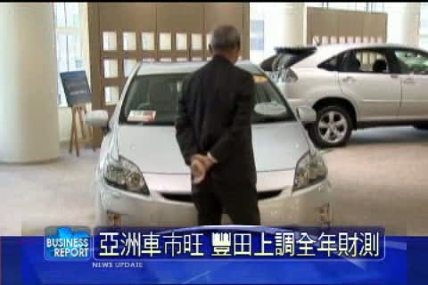 日商豐田汽車(Toyota Motor)宣布上調今年度獲利預期,銷售從早先預估的19.2兆日圓,調高為19.5兆日圓,淨利從3千100億日圓,調高為3千300億日圓,相當於38.5億美元,主要是北美地區銷售回溫,加上亞洲地區在第二季銷售成長47%,彌補歐洲地區銷售下滑,使豐田汽車對今年銷售展望比稍早樂觀,不過調高後的獲利,仍然低於市場預期。[CT04]