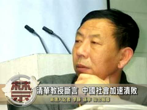 【新唐人2010年8月5日訊】“有人擔心中國會發生大的社會動盪,但事實上,對中國社會最大的威脅是日益明顯的社會潰敗”,發出這一驚人之語的是中國清華大學社會系教授孫立平。孫立平教授形象的比喻說,動盪好比是健康的身體被別人打傷了,而社會潰敗則是社會肌體的細胞壞死,機能已經失效。