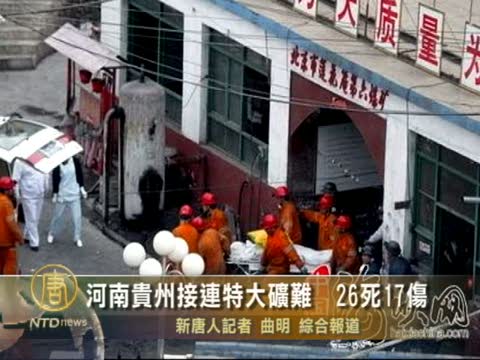 河南貴州接連特大礦難 26死17傷