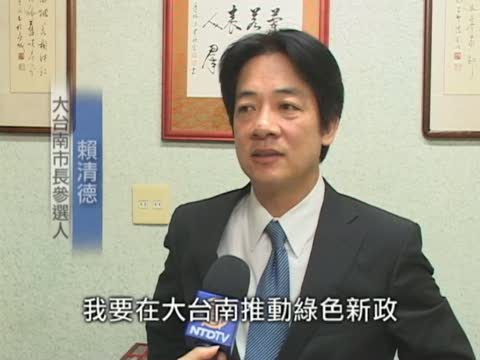 民進黨大臺南市長參選人賴清德:「我要在大臺南推動綠色新政。」